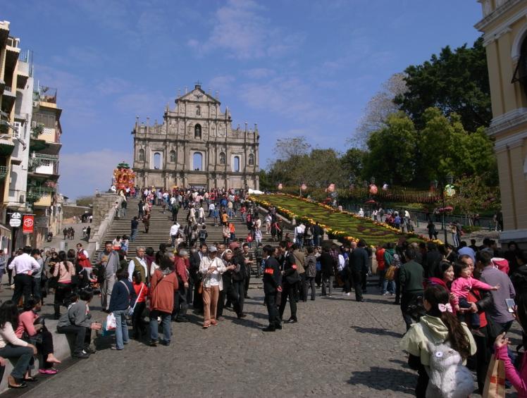 マカオのシンボルとして 有名な聖ポール天主堂 跡、観光客で混み合って いました。
