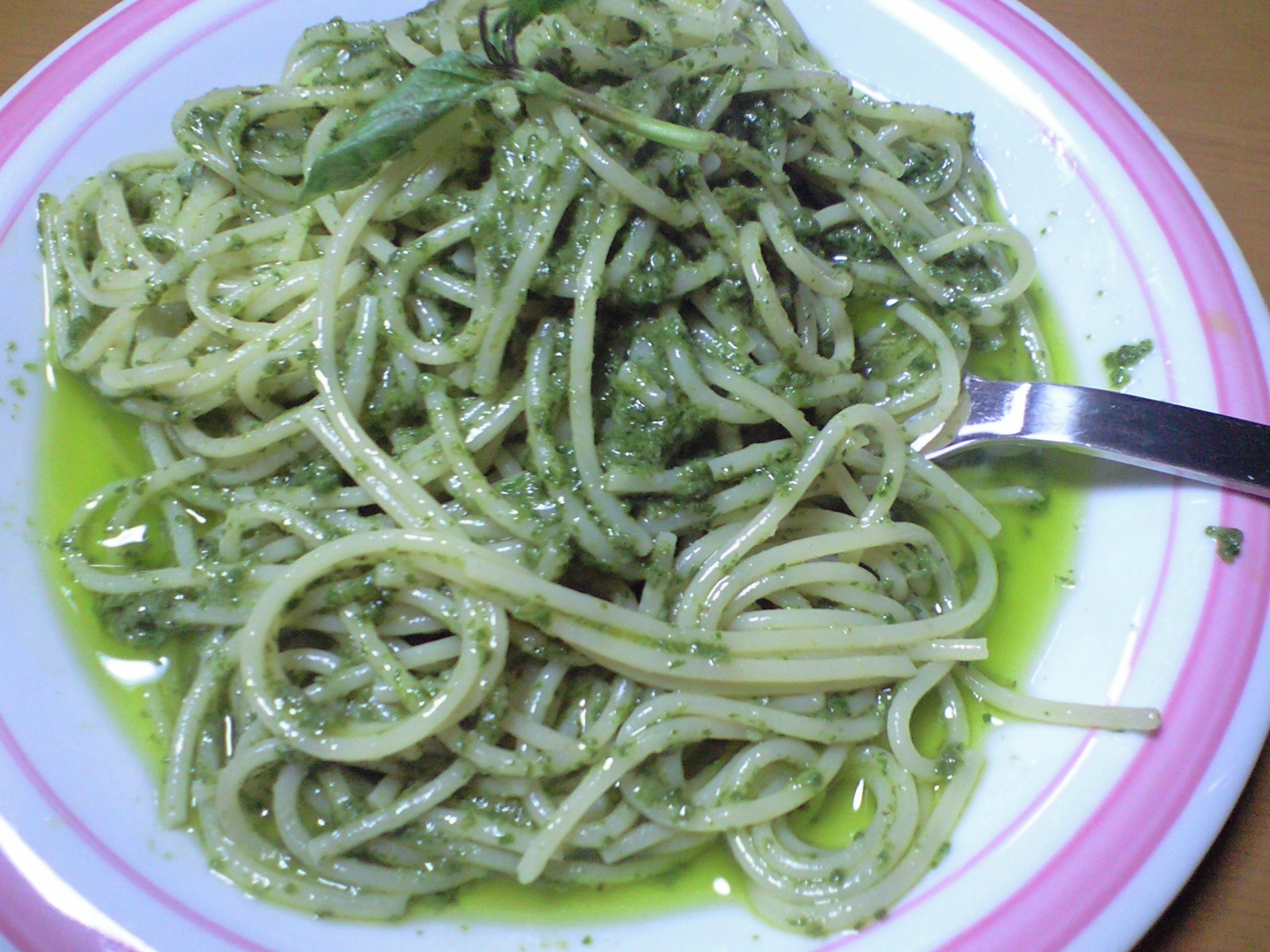 自家製(裏の畑)バジルをたっぷり使って、オリーブオイルと松の実などなど。