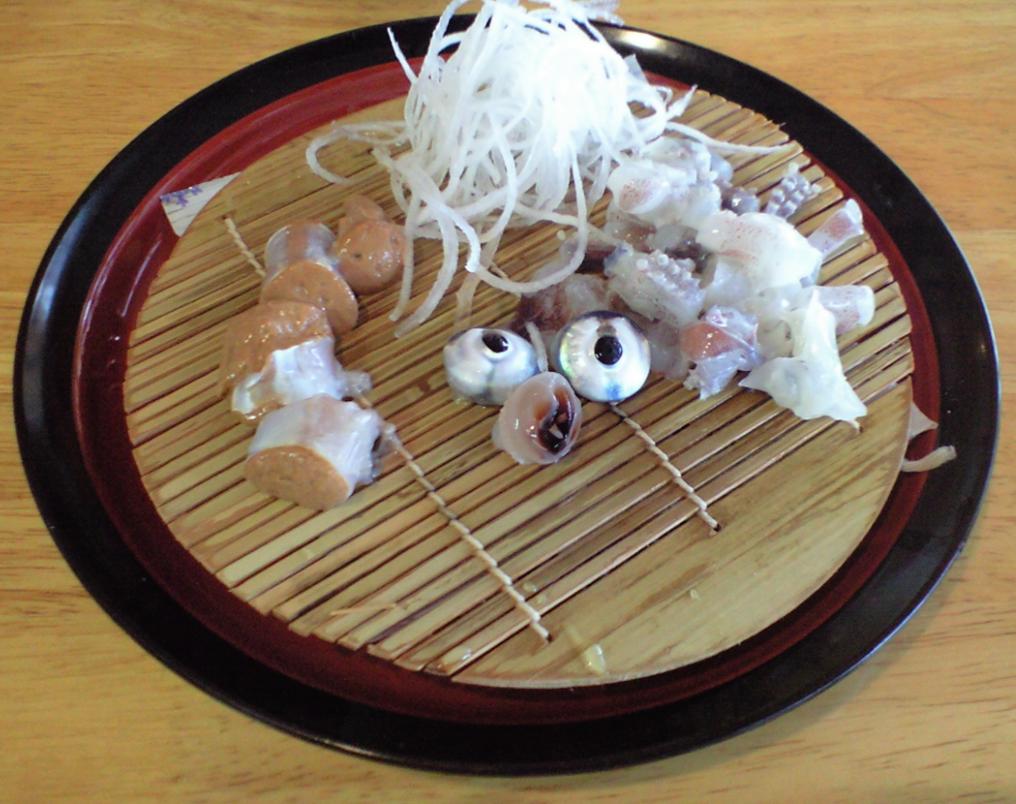 活イカの踊り食いを体験しました。 醤油をかけると、動き出します。 食べてみると、舌に吸盤が吸い ついて、痛いくらいでした。 生きが良すぎて、味はあんまり しなかったです。(笑)