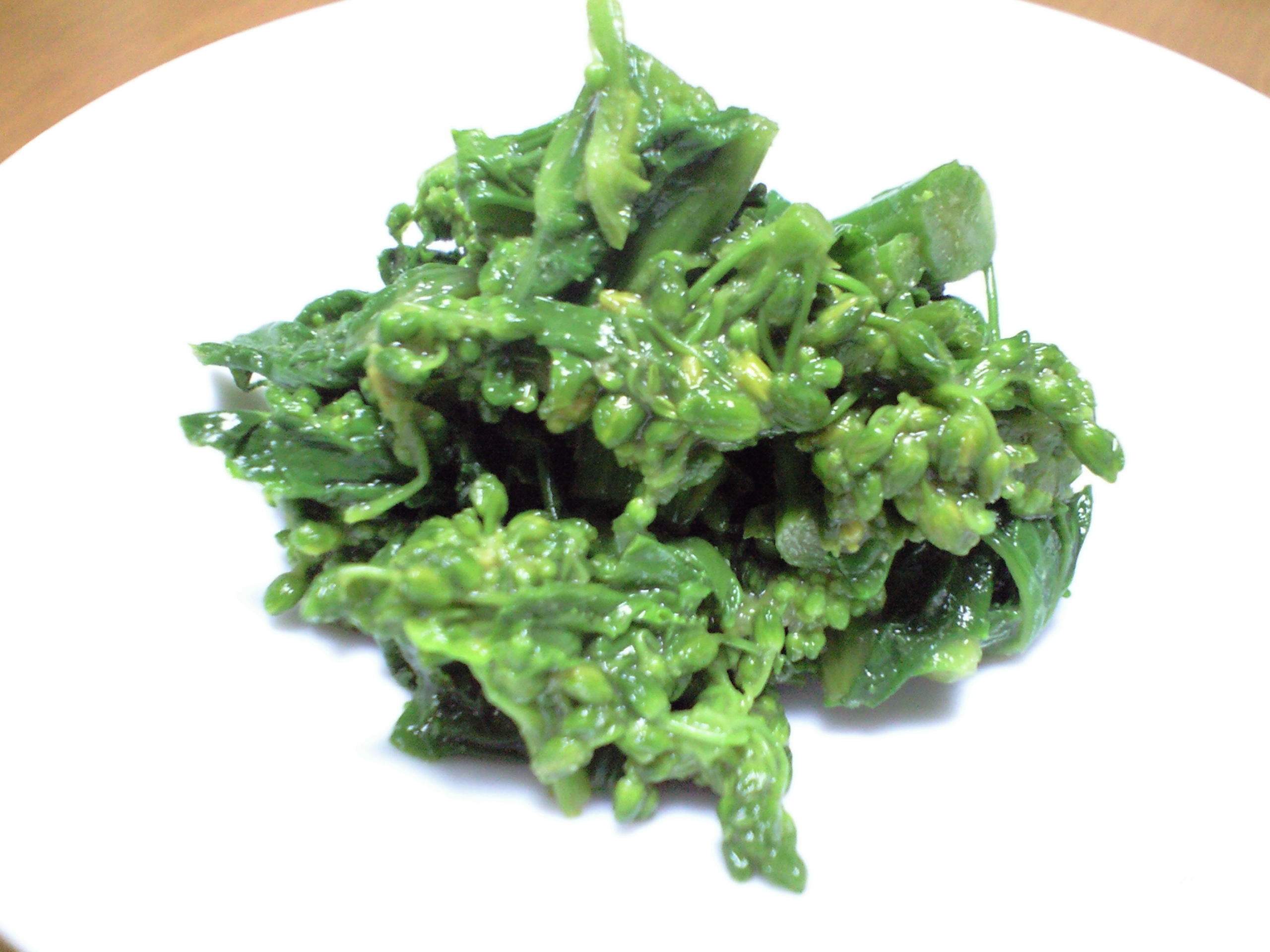 菜の花をさっと湯がいて、和辛子と醤油であえます。